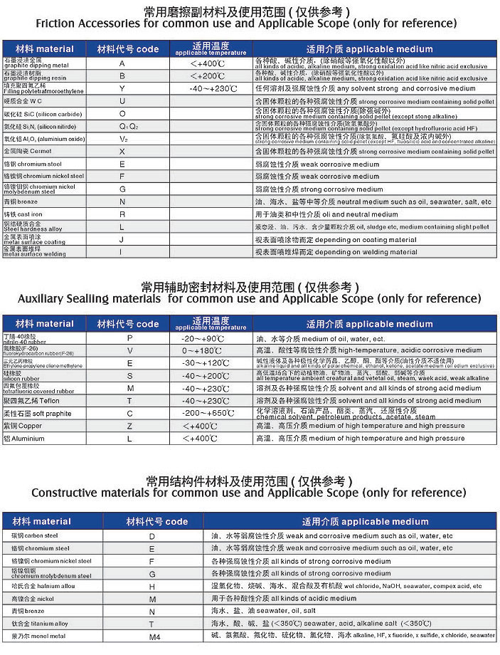 運行參數(shù): 密封腔壓力: ≤0.6~1.6MPa ,密封腔溫度:-20℃~180℃ ,線速度: ≤15m/sec,介質(zhì):水類,油類,弱酸,弱堿等一般腐蝕性化工介質(zhì)。